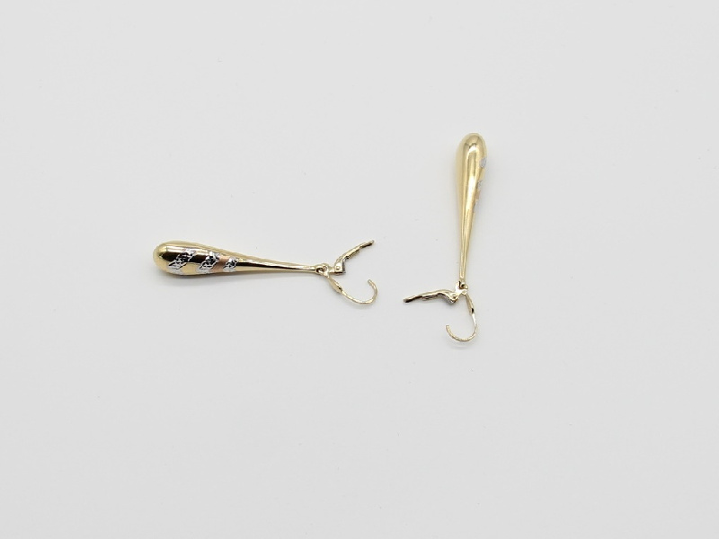 Új akciós arany, háromszínű, vésett, lógós fülbevaló. 14 karátos.